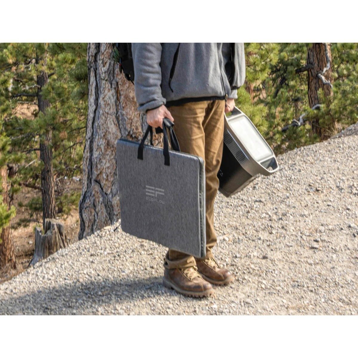 • Пренасяйте този 6 кг соларен панел в калъф (включен в комплекта), който служи и като стойка, осигурявайки ви най-добрия ъгъл за зареждане със слънчева енергия